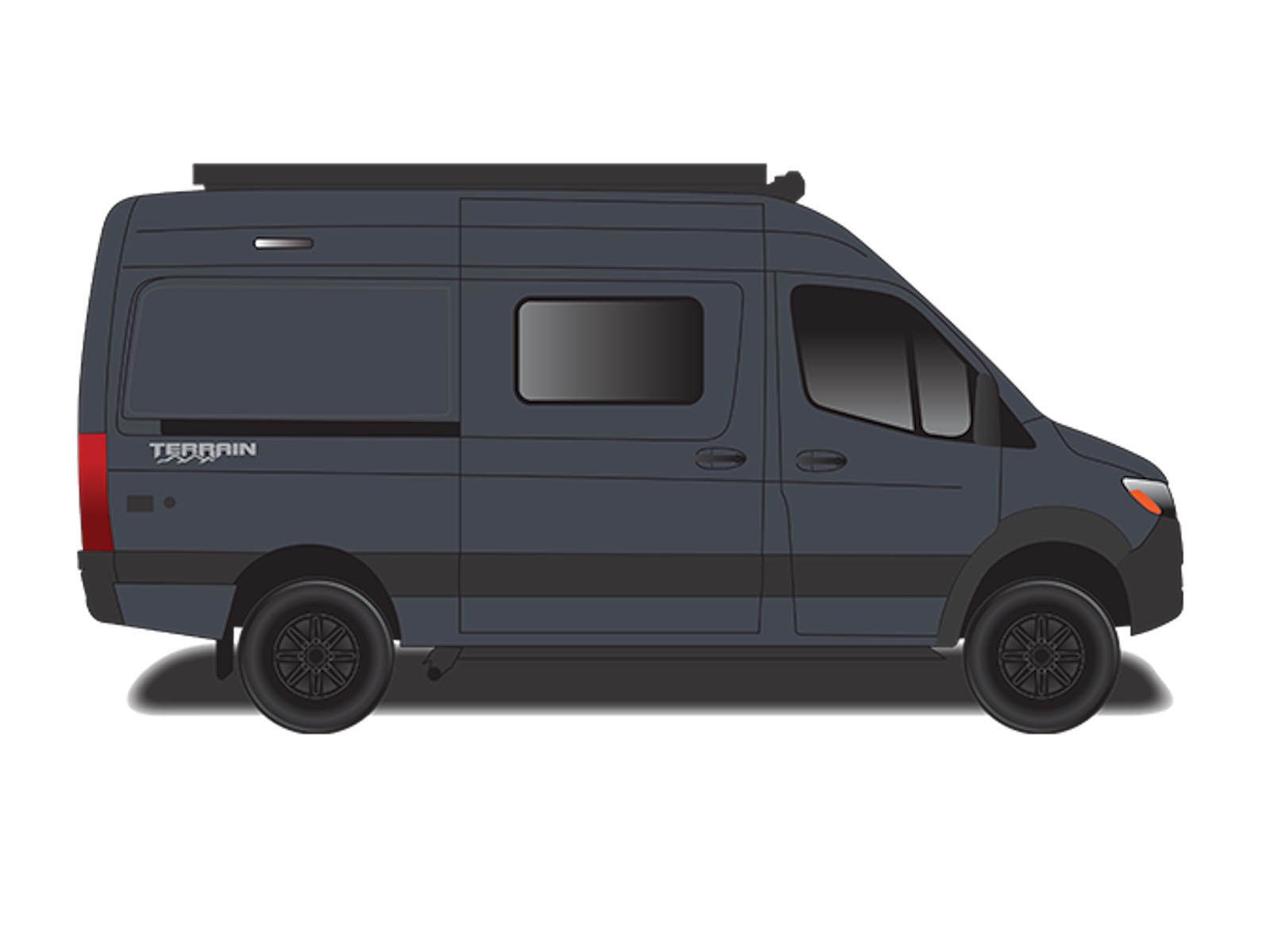 The Terrain rides on the Mercedes-Benz® Sprinter 2500 AWD chassis, equipped with a 144" wheelbase and a turbocharged 2.0L inline 4-cylinder Twin Turbo diesel engine that delivers 211 horsepower. Its powerful all-wheel drive system is backed by a suite of safety features to keep you in control wherever the trail leads. The JRide® ride and handling package adds Koni shocks and a heavy-duty rear stabilizer bar for a smooth and stable ride on rough terrain. When it’s time to gear up, a moveable roof ladder makes accessing your double roof rack simple, whether you're grabbing your kayak or storing camping essentials The integrated Lithionics® 48V 165 amp-hour smart lithium battery system supplies 7.9KW hours of clean, quiet power so you can stay off-grid longer. For those who prefer the affordability of a generator, a 2,500W LP generator can be optioned in place of the lithium package.