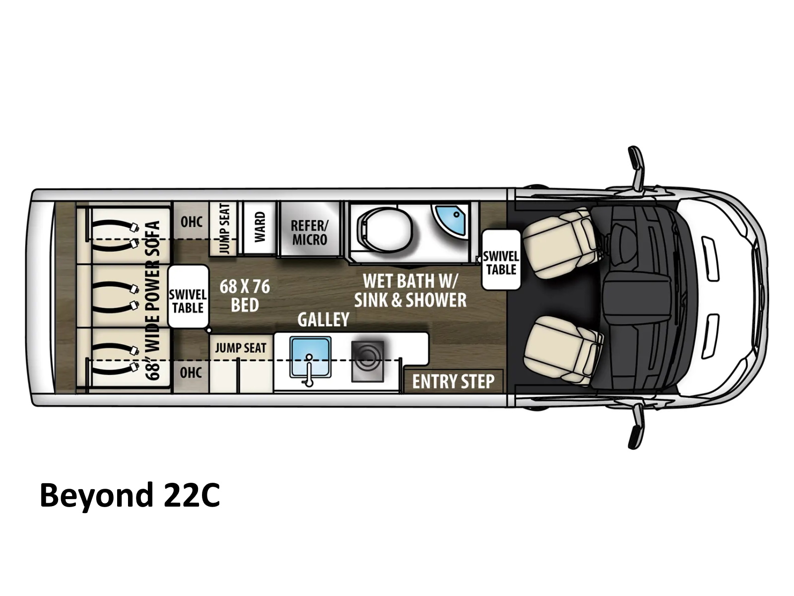 This versatile Class B Motorhome is designed for today's active lifestyles. Experience unrivaled fuel economy combined with legendary Ford® styling and reliability. Relax in luxurious captains seats while enjoying the view through large frameless windows. The interior ergonomics ensure you are as comfortable on the road as you are at home. Beyond gets you where the action is, in style!