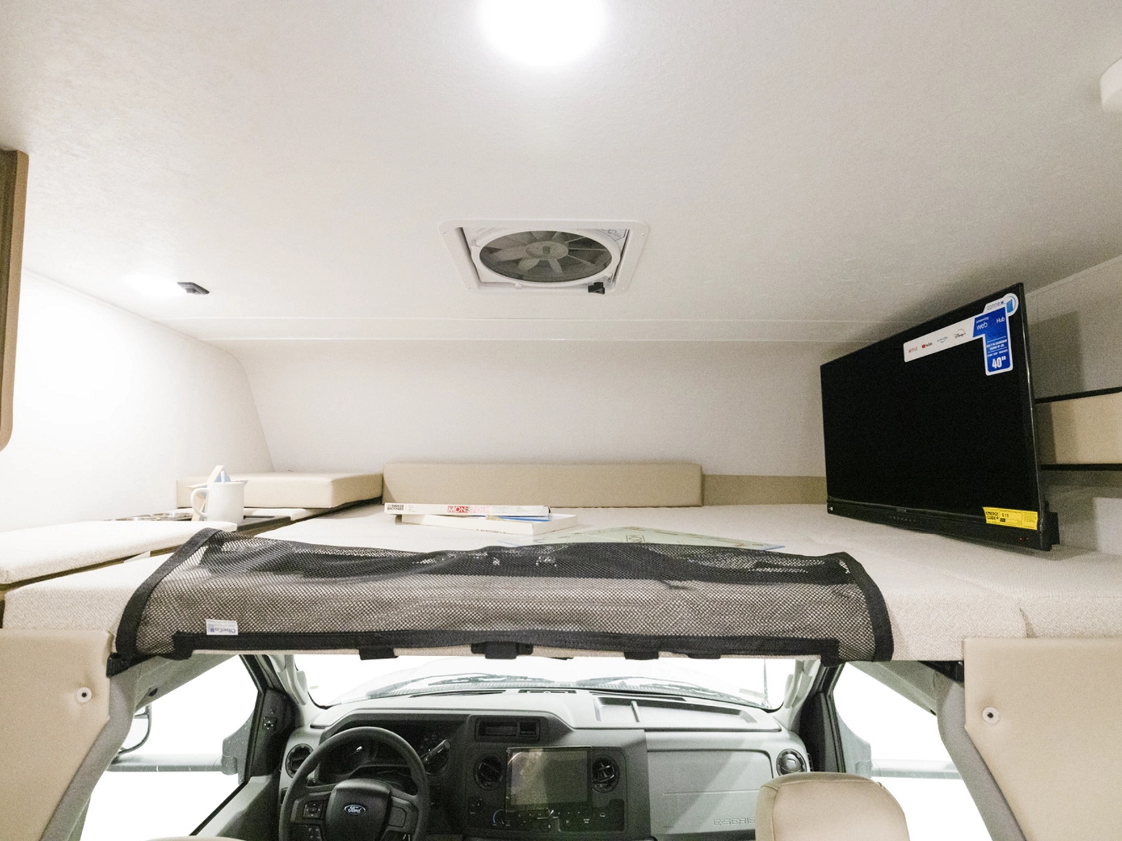 • Large 57 x 80" Cab-Over Sleeping Area with Cup Holders & Storage (800 lb. Capacity)