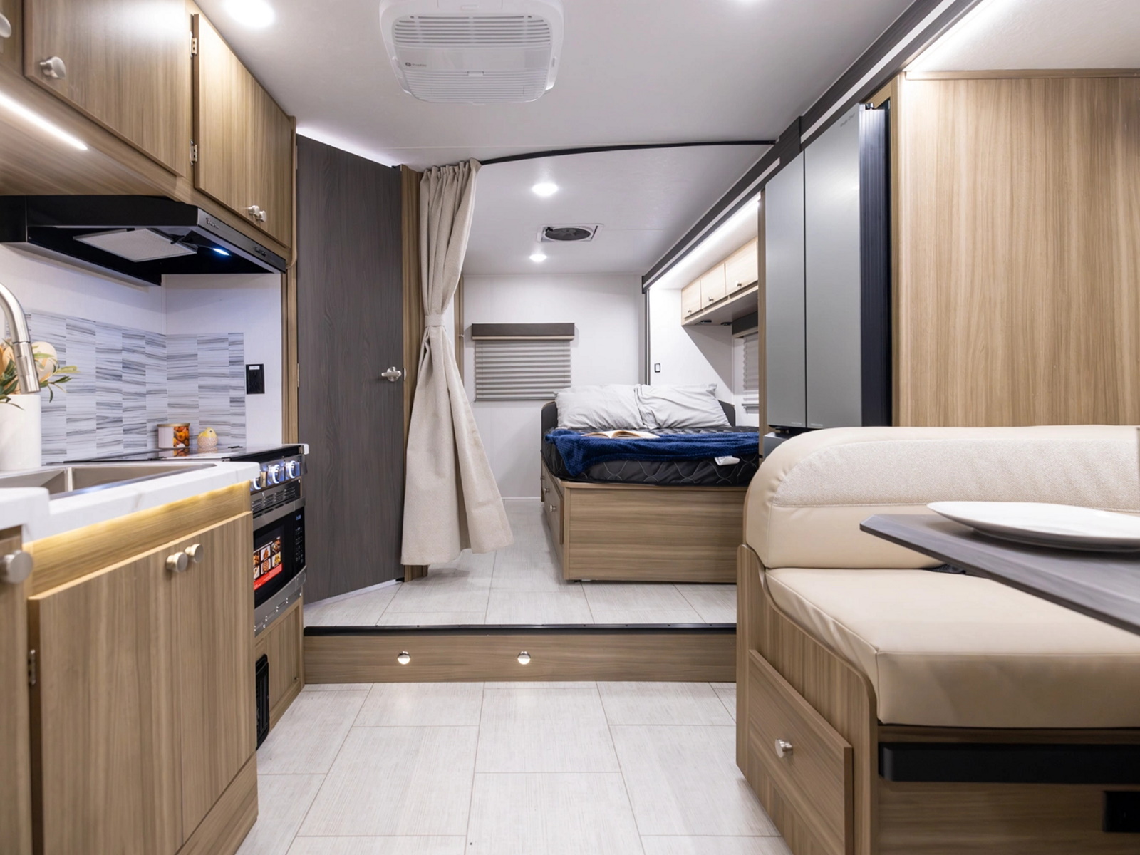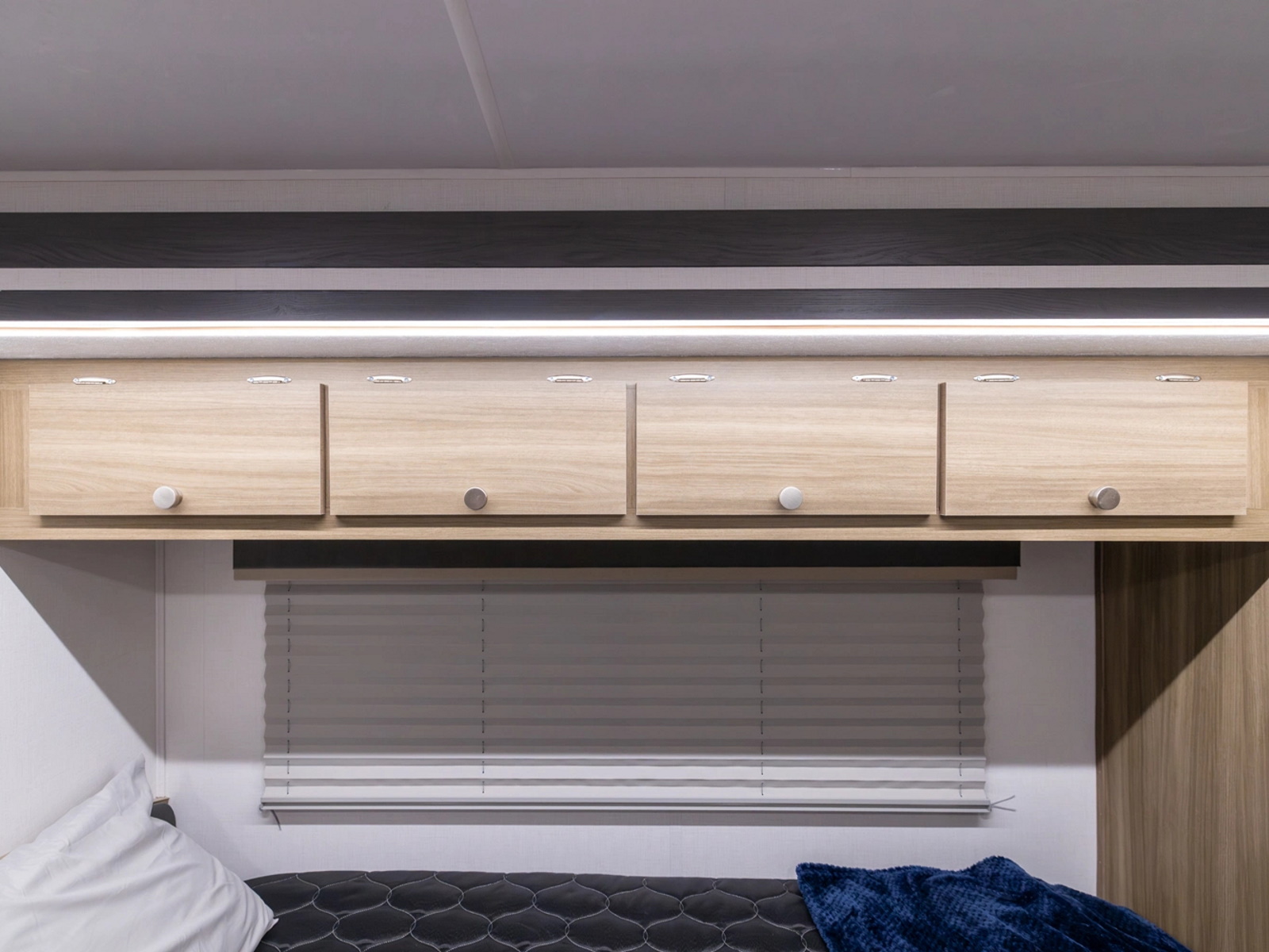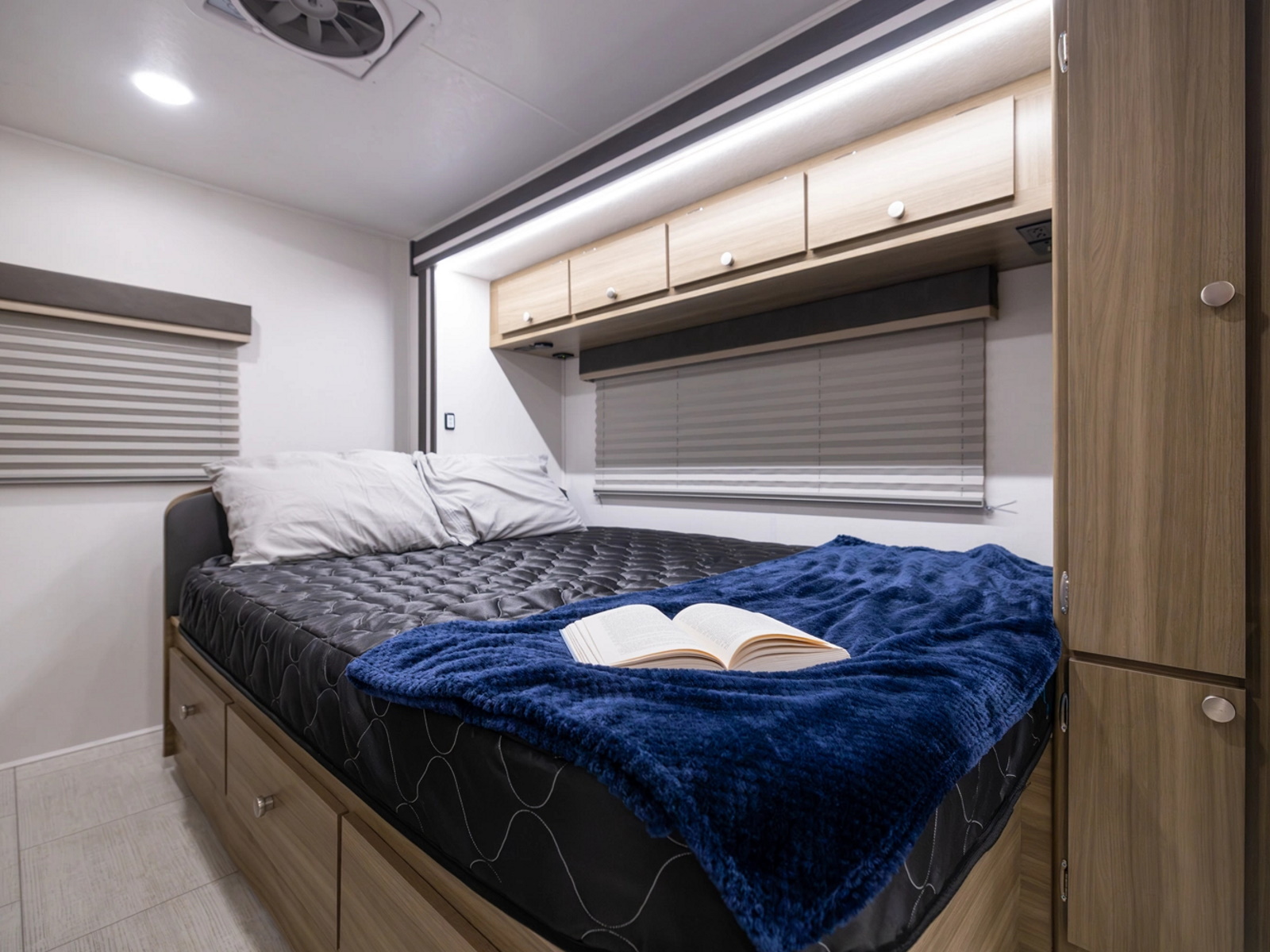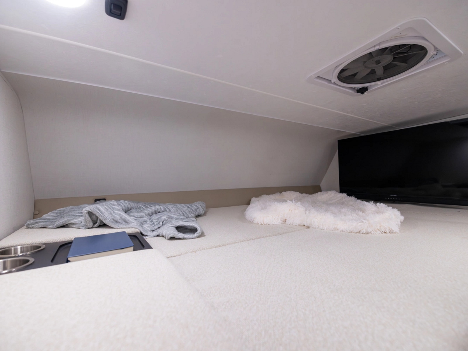 - Large 57 x 80" Cab-Over Sleeping Area with Cup Holders & Storage (800 lb. Capacity)