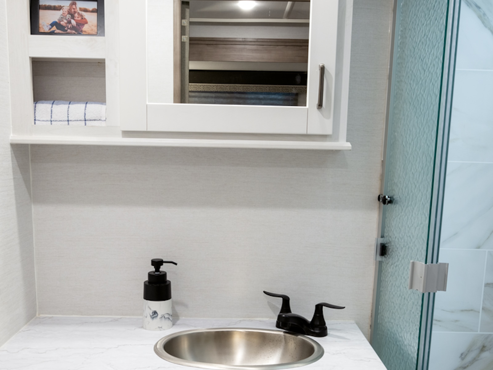 - Power vent and shower skylight in bath
