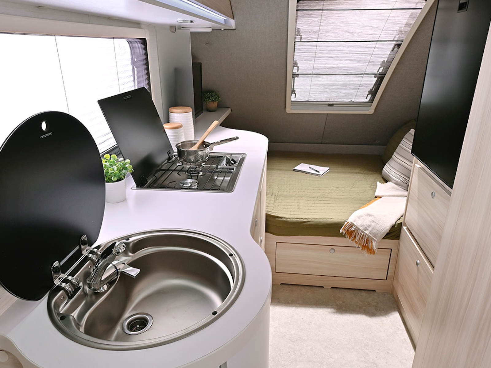 With its sleek exterior and thoughtful interior layout, the nuCamp TAB 400 combines convenience and comfort for memorable outdoor adventures.
