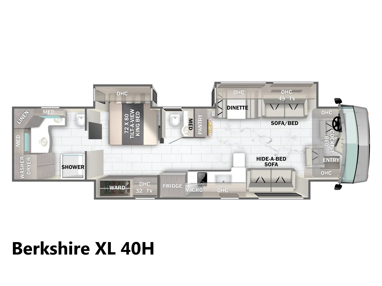 Each floorplan is paired with a Freightliner XCR raised rail chassis and will feature a Cummins engine along with a Allison transmission that provide unmatched power, confidence and comfort while traveling down the road. Every Berkshire motorhome is meticulously hand-crafted and tested for 16-weeks before leaving the factory. Come experience the Limited Build, Limitless Quality of Berkshire.