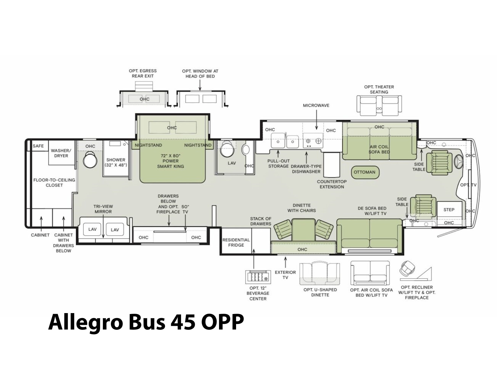 Give yourself something you deserve: Unforgettable travel in unmatched luxury. The 2026 Allegro Bus makes that happen. Between the three floor plans, ranging from 38′ to 45′, each offers something unique that fits to any lifestyle. Built on the exclusive PowerGlide XC raised rail chassis, the Allegro Bus provides comfort and safety on and off the road, wherever your travels may take you. For the 2026 Allegro Bus, we’re introducing PowerDrive, an enhanced steering column offering better handling, drivability, and maneuverability, giving you the confidence to “Drive with Power.”