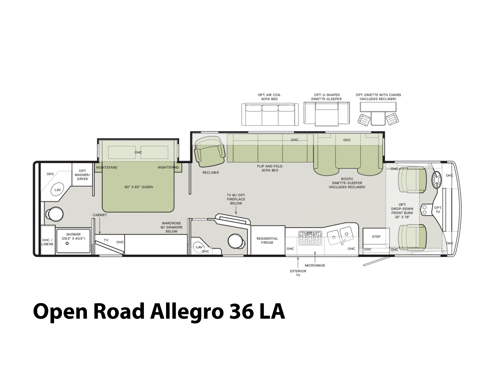 The 2026 Open Road Allegro is the ultimate choice for families seeking comfort, convenience, and adventure on the road. Its spacious, well-designed interior offers plenty of room for everyone to relax and enjoy the journey. Between it’s four floor plans, the Open Road features multiple sleeping spots, expansive living areas, and plenty of storage space, making it easy to accommodate the whole family without sacrificing comfort. The 2026 Open Road Allegro is built for long road trips, making it the perfect choice for families who want to create lasting memories while traveling in style and ease.