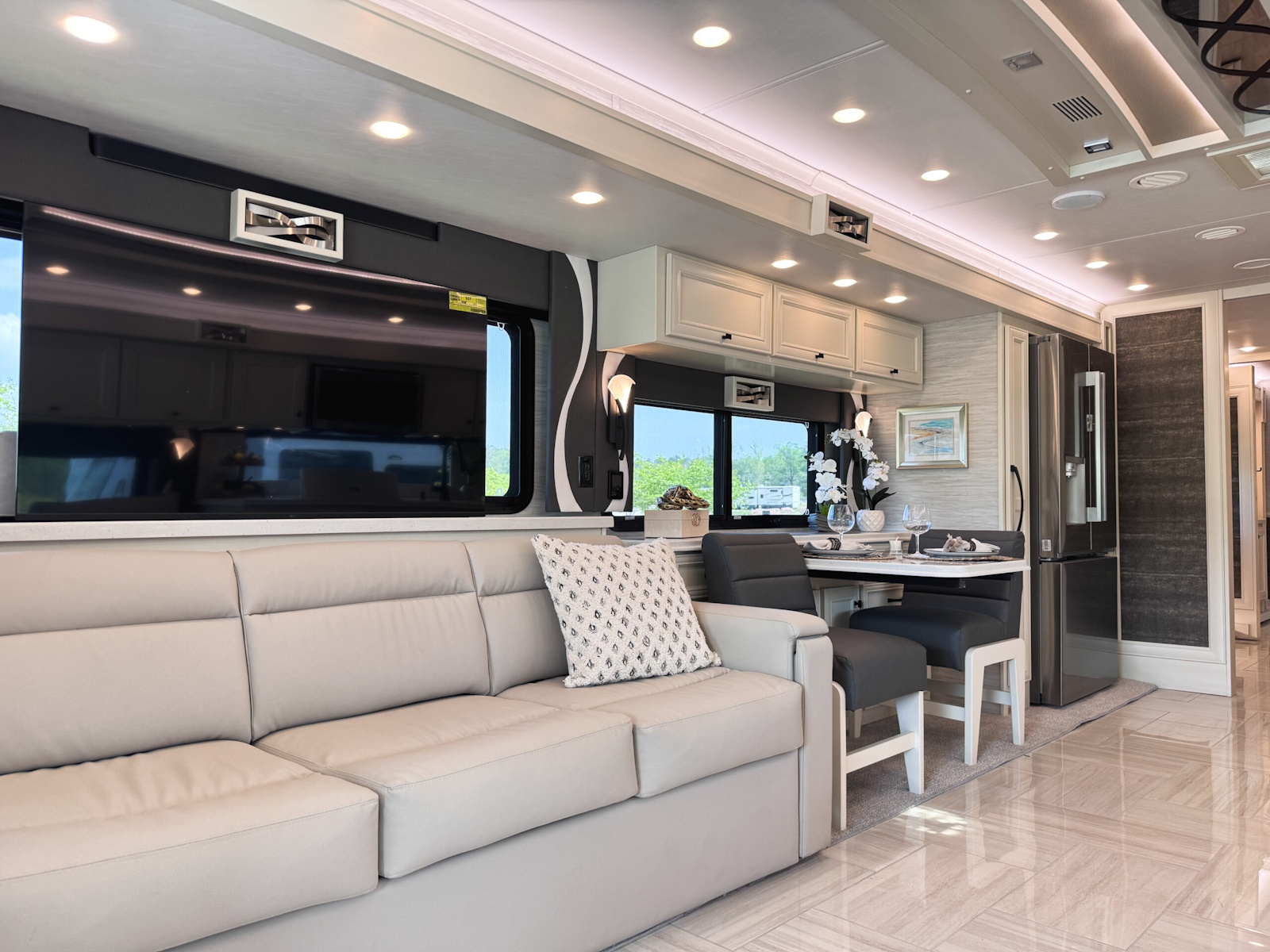 The 2026 Phaeton redefines luxury on the road with a host of new upgrades designed to elevate every journey. With four spacious floor plans ranging from 37′ 9″ to 45′, there’s a perfect option for every traveler. We’re unveiling new interior decors and stylish tile floor choices, including a heated tile option, giving you options to match your tastes and lifestyle. And for pet lovers, the optional Pet Perks Package ensures your furry friends travel in comfort too. No matter where the road takes you, the 2026 Phaeton is ready to take your travel experience to the next level.
